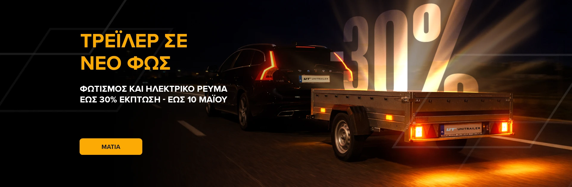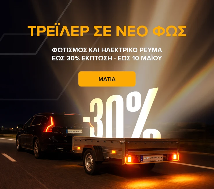 Το ηλεκτρονικό κατάστημα Unitrailer δημιουργήθηκε με γνώμονα την αυξανόμενη ζήτηση για ανταλλακτικά ρυμουλκούμενων αυτοκινήτων. Η προσφορά μας περιλαμβάνει μια μεγάλη γκάμα προϊόντων: τροχούς στήριξης, ζάντες, ελαστικά, λασπωτήρες και πτερύγια λάσπης, κοτσαδόρους και συσκευές υπέρβασης, βαρούλκα, άξονες και εξαρτήματα ανάρτησης, καθώς και ρυμουλκούμενα αυτοκινήτων. Χρειάζεστε αξιόπιστα αξεσουάρ; Σας ενδιαφέρει ο φωτισμός, τα ηλεκτρικά ή ίσως ψάχνετε ανταλλακτικά για ρυμουλκούμενα σκαφών; Στο κατάστημά μας θα βρείτε όλα τα ανταλλακτικά για ρυμουλκούμενα αυτοκινήτων, ρυμουλκούμενα σκαφών, τροχόσπιτα και ρυμουλκούμενα που χρειάζεστε. Σε ένα μέρος, με επαγγελματική εξυπηρέτηση και άμεση αποστολή.