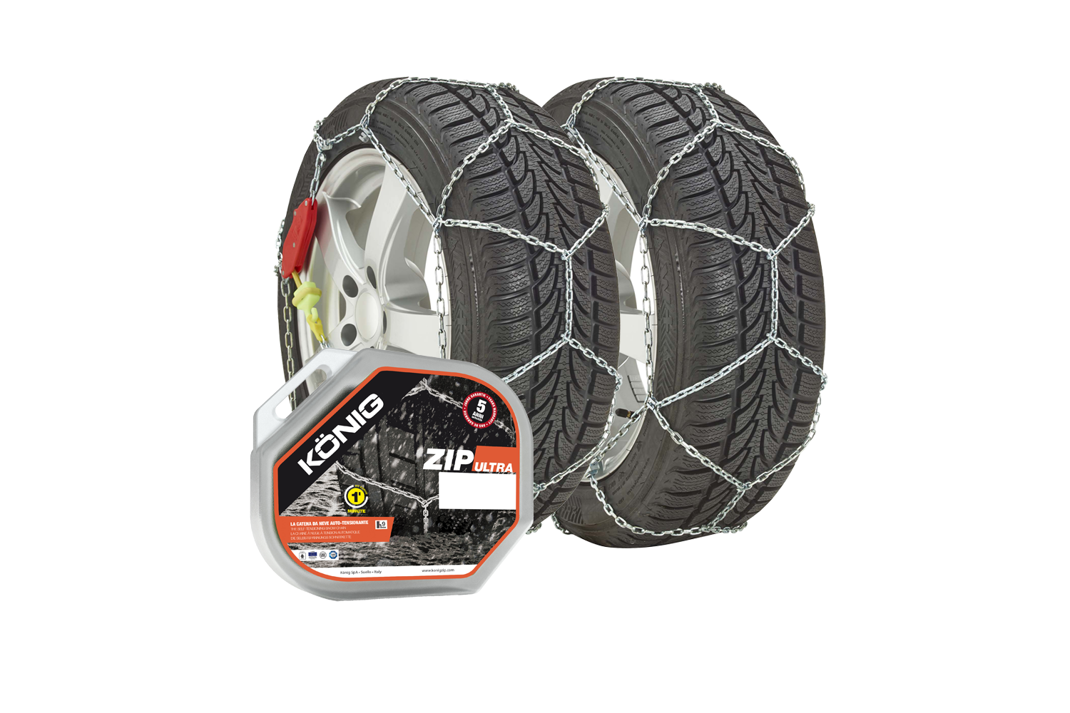 Η εγκατάσταση των αλυσίδων είναι γρήγορη και εύκολη – δεν χρειάζονται ειδικά εργαλεία ή να περνάτε το όχημα πάνω από την αλυσίδα. Η έκδοση Zip Ultra είναι εξοπλισμένη με αυτόματο σύστημα τάνυσης που ελέγχει αυτόματα την τάση, εξασφαλίζοντας άνεση και ασφάλεια. Σε αντίθεση με τα παραδοσιακά μοντέλα, δεν χρειάζεται να ρυθμίσετε χειροκίνητα την αλυσίδα μετά από οδήγηση μερικών μέτρων. Τα εξαρτήματα με χρωματική κωδικοποίηση καθιστούν την εγκατάσταση διαισθητική και εύκολη, ακόμα και με γάντια ή σε αντίξοες καιρικές συνθήκες.
