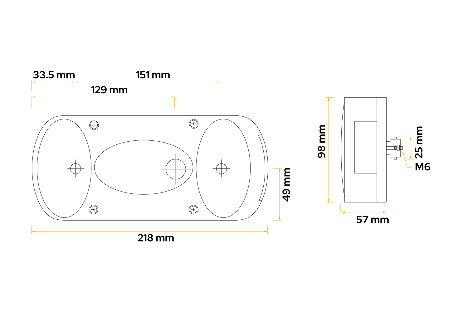Το πίσω φωτιστικό Midipoint II της ASPÖCK προορίζεται για εγκατάσταση τόσο στην αριστερή όσο και στη δεξιά πλευρά του οχήματος και έχει τις ακόλουθες διαστάσεις: πλάτος 218 mm, ύψος 98 mm, βάθος 57 mm . Εξοπλισμένο με βύσμα μπαγιονέτ 5 ακίδων , επιτρέπει την εύκολη και γρήγορη εγκατάσταση σε ρυμουλκούμενα, λεωφορεία και ρυμουλκά .