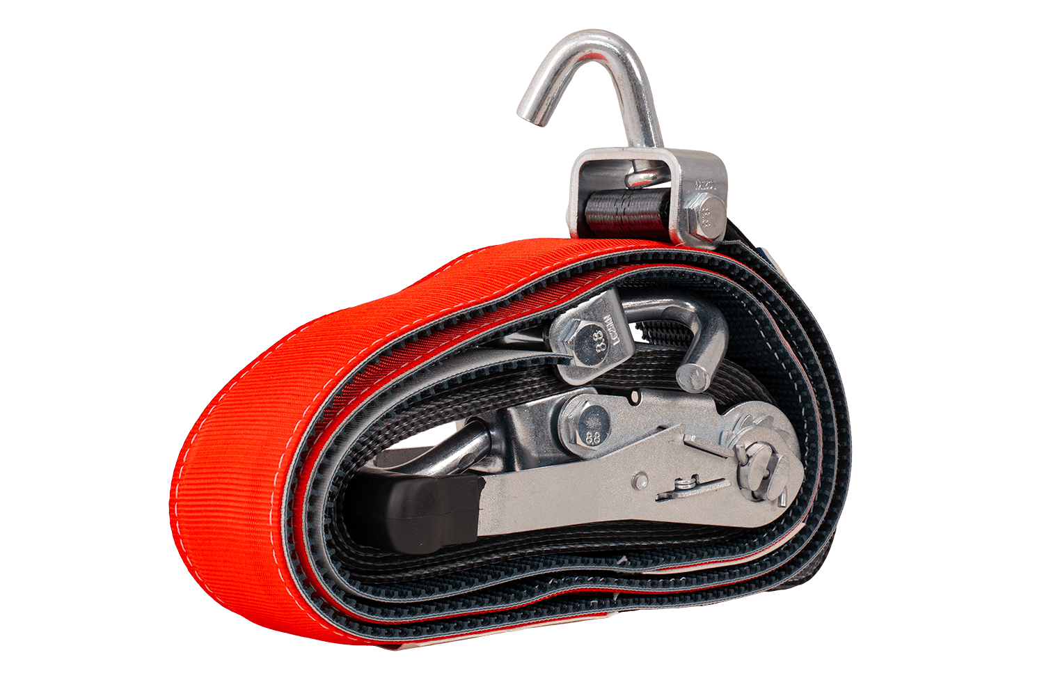 Οι ιμάντες είναι κατασκευασμένοι από ανθεκτικό υλικό PES (100%) , ανθεκτικό στην τριβή και το τέντωμα, και ο σχεδιασμός τους περιλαμβάνει τρία περιστρεφόμενα χαλύβδινα άγκιστρα - δύο προσαρτημένα στον ιμάντα και ένα ενσωματωμένο με τον εντατήρα. Όλα τα μεταλλικά στοιχεία, συμπεριλαμβανομένης της πόρπης, είναι συμπαγή και ανθεκτικά στη διάβρωση, εξασφαλίζοντας μια ασφαλή και σταθερή στερέωση. Ένα επιπλέον πλεονέκτημα είναι η λαστιχένια λαβή εντατήρα , η οποία βελτιώνει την άνεση της εργασίας ακόμα και όταν φοράτε γάντια.