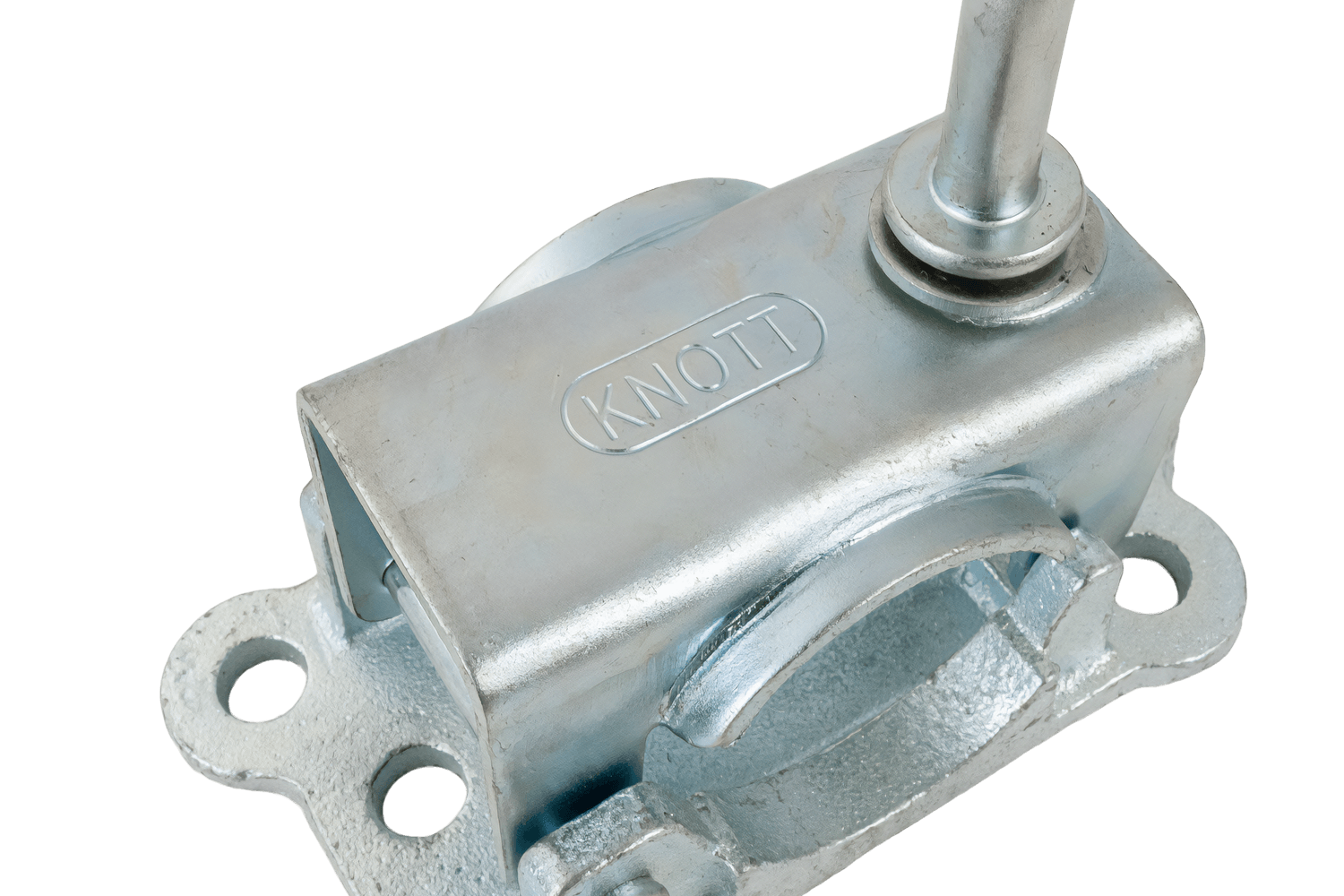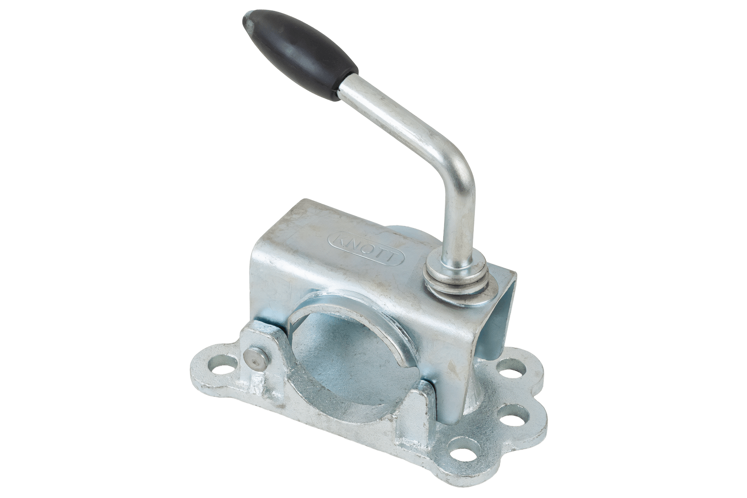 Ο σφιγκτήρας/σφιγκτήρας τροχού jockey KNOTT 4802869X χρησιμοποιείται για την τοποθέτηση τροχών jockey με σωλήνα διαμέτρου 48 mm . Η βάση έχει οπές στερέωσης με απόσταση 150 x 50 mm και διάμετρο 11 mm. σας επιτρέπει να συνδέσετε γρήγορα τη βάση στο πλαίσιο ή στη βάση της ράβδου έλξης. Ο μοχλός πίεσης εξασφαλίζει ασφαλή λαβή στον σωλήνα, μειώνει την ολίσθηση και τους κραδασμούς και επιτρέπει γρήγορη ρύθμιση του ύψους του τροχού ή πλήρη αφαίρεση για μεταφορά ή σέρβις.