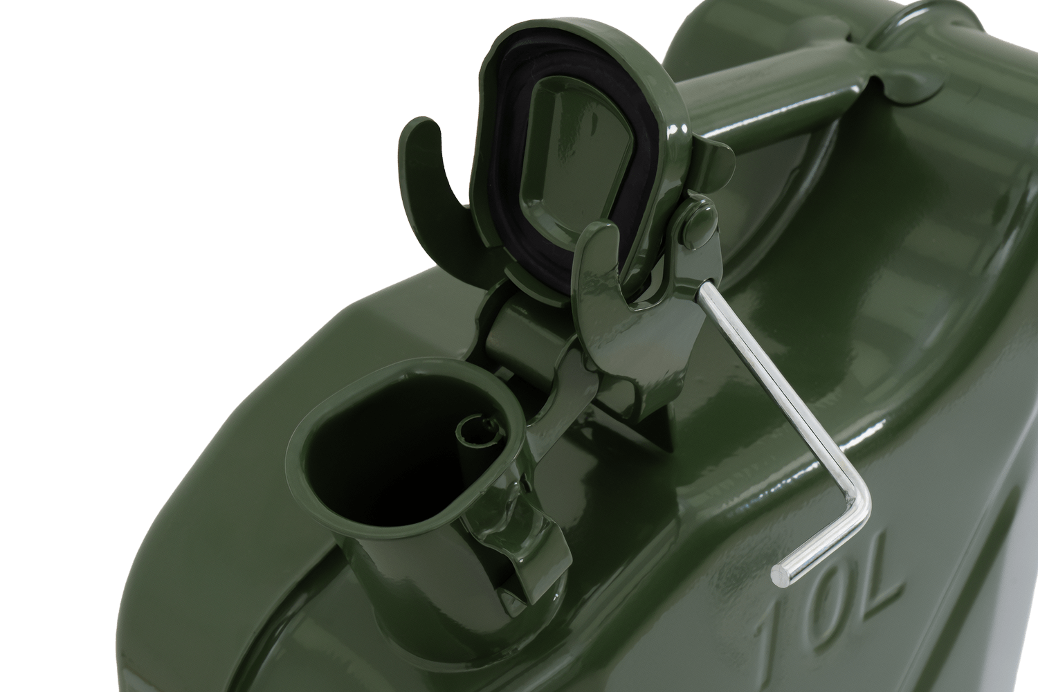 Ένα ανθεκτικό δοχείο 10 λίτρων κατασκευασμένο από υψηλής ποιότητας χάλυβα με ηλεκτροστατική βαφή , ανθεκτικό στη διάβρωση, τις μηχανικές βλάβες και το καύσιμο. Εξοπλισμένο με ερμητική σφράγιση που αποτρέπει τις διαρροές και προστατεύει το περιεχόμενο από την εξάτμιση και τη μόλυνση.