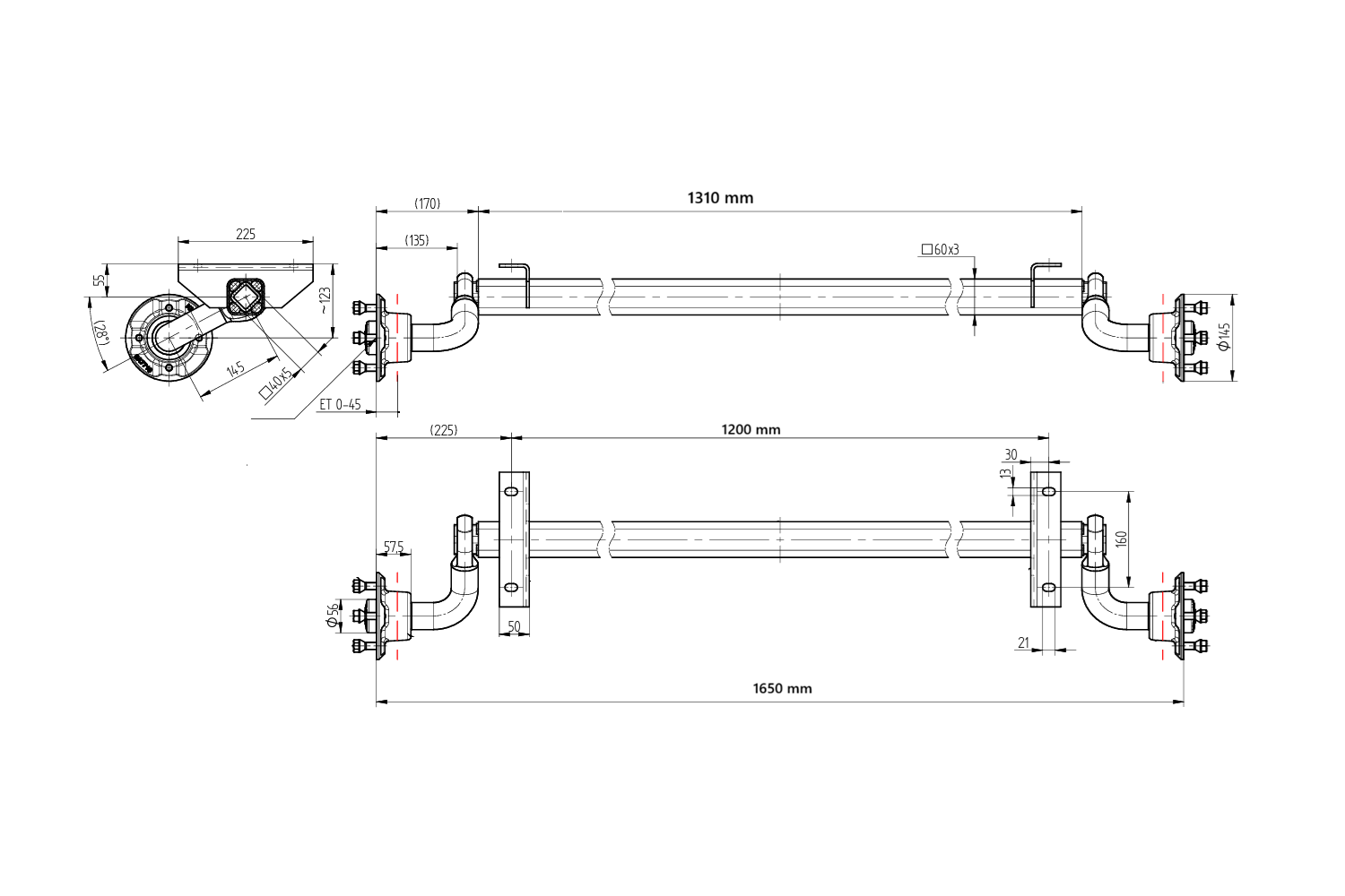 Ο άξονας χωρίς φρένα KNOTT 6A8709.001 έχει σχεδιαστεί για ελαφριά ρυμουλκούμενα με μέγιστη ικανότητα φορτίου 750 kg . Η απόσταση των οπών στήριξης είναι 1200 mm και η απόσταση των μουαγιέ είναι 1650 mm , επιτρέποντας εύκολη εγκατάσταση σε ένα ευρύ φάσμα οχημάτων. Το τυπικό μοτίβο μπουλονιών 4x100 εξασφαλίζει συμβατότητα με τους περισσότερους τροχούς που διατίθενται στην αγορά. Το μήκος του ψαλιδιού είναι 145 mm , εξασφαλίζοντας σταθερότητα και βέλτιστη απορρόφηση κραδασμών, αυξάνοντας έτσι την ασφάλεια οδήγησης, ακόμα και όταν είναι πλήρως φορτωμένο.