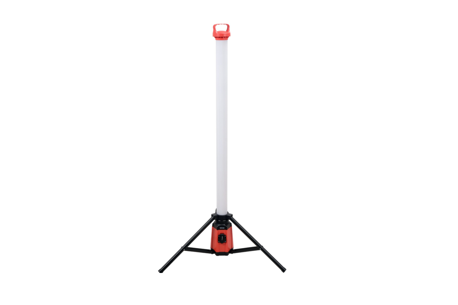 Η λάμπα λειτουργεί με 220-240 V AC, 50 Hz και διαθέτει ενσωματωμένη πρίζα με μέγιστο φορτίο 3000 W , επιτρέποντας τη σύνδεση πρόσθετων εργαλείων. Η ανθεκτική κατασκευή της από αλουμίνιο και PVC, η βαθμολογία προστασίας IP44 και η μόνωση Κλάσης Ι επιτρέπουν την ασφαλή λειτουργία σε συνθήκες υψηλής υγρασίας και σκόνης. Περιλαμβάνονται ένα πτυσσόμενο τρίποδο και μια λαβή μεταφοράς για εύκολη τοποθέτηση και μεταφορά. Το μήκος του καλωδίου είναι 1,5 m (3G1,5 mm²), εξασφαλίζοντας ευκολία χρήσης.