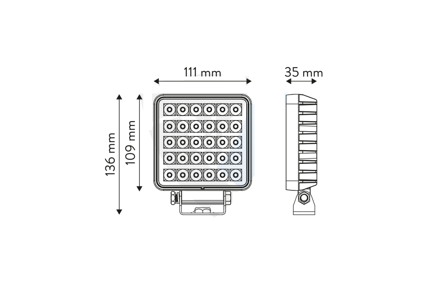• Η τετράγωνη λάμπα εργασίας TT.13308-W της TT TECHNOLOGY έχει ισχύ 30W και παράγει 2.400 lumen ουδέτερου λευκού φωτός (5.700K). Εξοπλισμένη με 30 LED, είναι ιδανική για γεωργικά μηχανήματα, μηχανήματα κατασκευών και επαγγελματικά οχήματα.