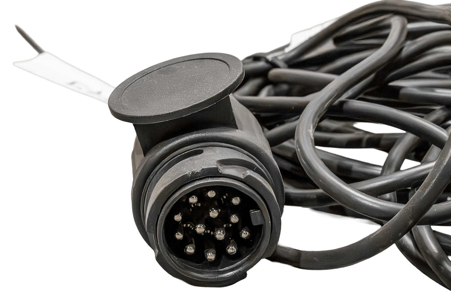 Η καλωδίωση είναι εξοπλισμένη με δύο 5-πολικούς συνδετήρες μπαγιονέτ για τη σύνδεση των πίσω φώτων. Το σύστημα μπαγιονέτ εξασφαλίζει γρήγορη και ασφαλή εγκατάσταση, εξαλείφοντας τον κίνδυνο τυχαίας αποσύνδεσης κατά την οδήγηση. Ο σχεδιασμός του συνδετήρα εγγυάται αδιάβροχη σύνδεση και προστατεύει τις επαφές από τη διάβρωση, εξασφαλίζοντας μακροχρόνια και απρόσκοπτη λειτουργία ολόκληρου του συστήματος φωτισμού του τρέιλερ.