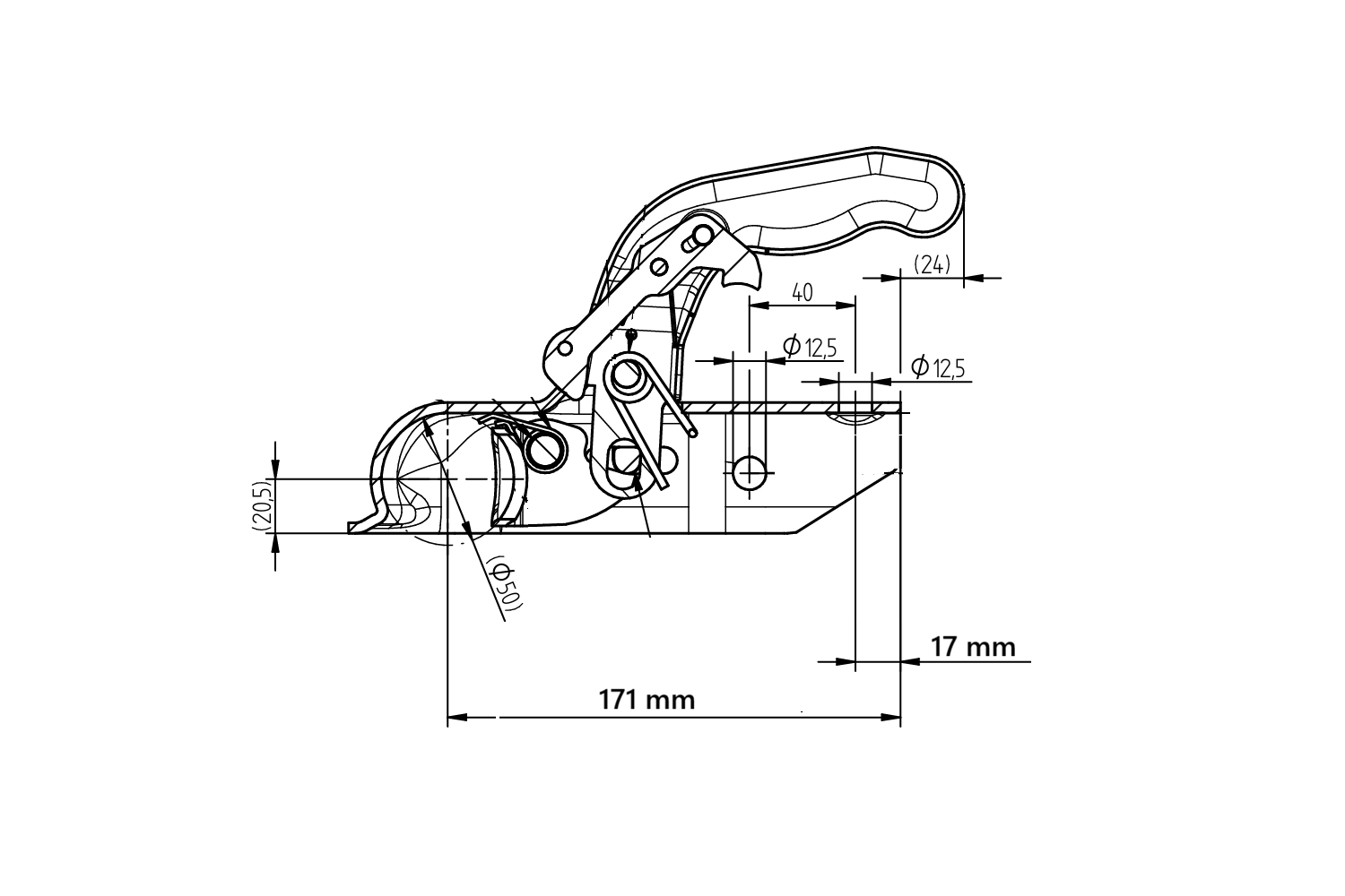 KNOTT KK14-A σφαιρικός κοτσαδόρος για ρυμουλκούμενο 1400kg με σωληνωτή ράβδο έλξης 50mm
