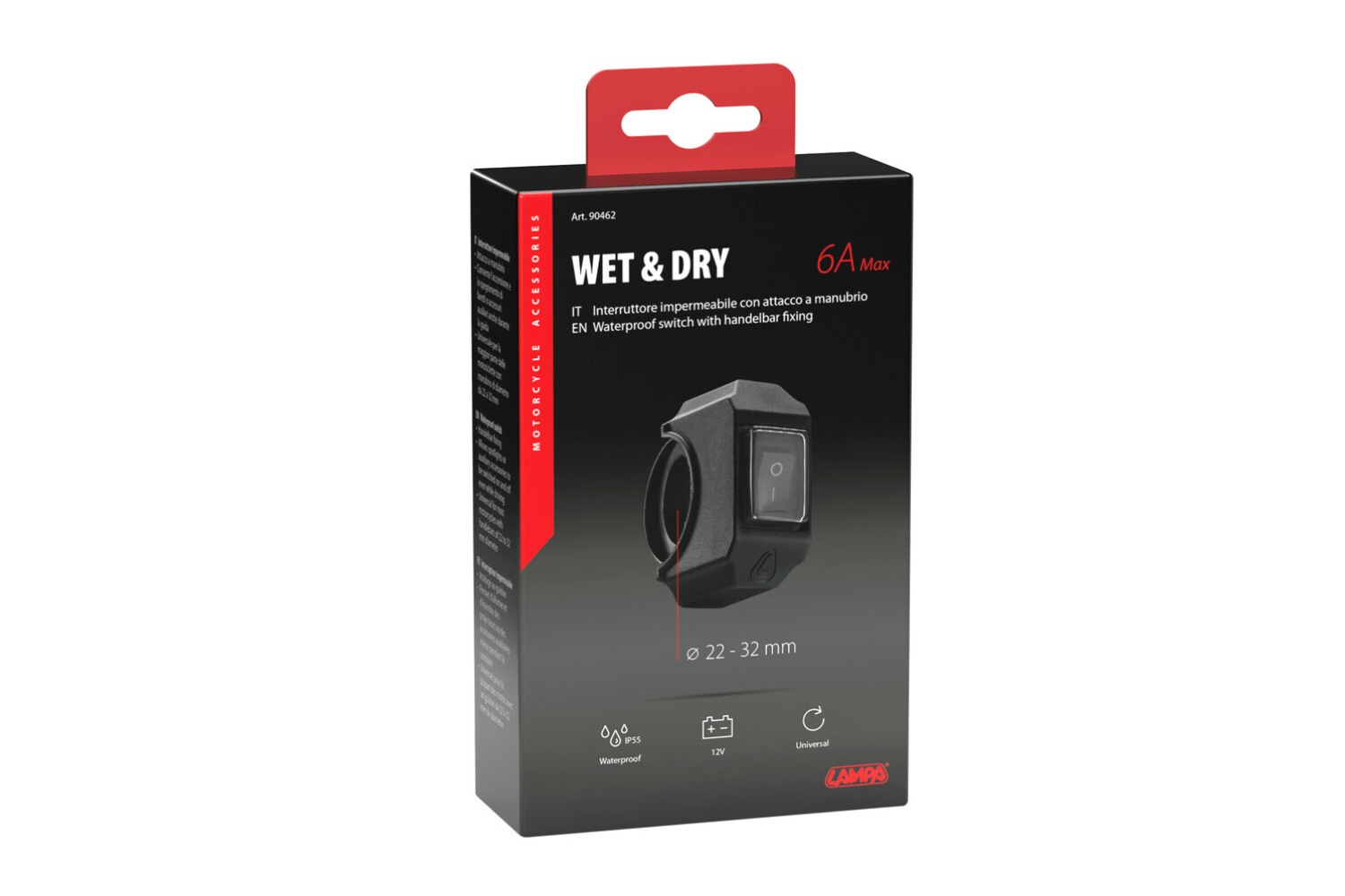 Αδιάβροχος διακόπτης για τιμόνι LAMP 90462 για έλεγχο ηλεκτρικών συσκευών 12V 6A max