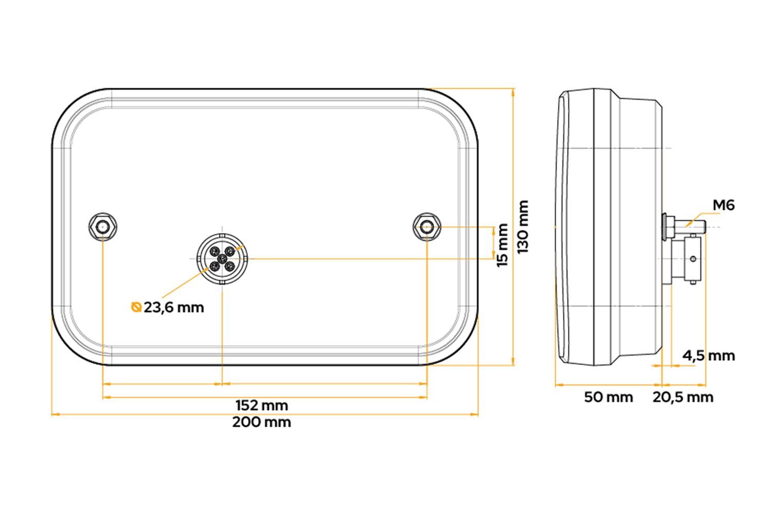 Το πίσω φωτιστικό LED FT-270 της FRISTOM, σχεδιασμένο για τοποθέτηση στη δεξιά πλευρά του οχήματος , χαρακτηρίζεται από τις ακόλουθες διαστάσεις: πλάτος 200 mm, ύψος 130 mm, βάθος 50 mm . Σχεδιασμένο να λειτουργεί σε εύρος τάσης 12 V , μπορεί να χρησιμοποιηθεί σε ελαφριά ρυμουλκούμενα, λεωφορεία και ρυμουλκούμενα, γεγονός που υπογραμμίζει την καθολικότητά του. Εξοπλισμένο με βύσμα μπαγιονέτ 5 ακίδων , επιτρέπει την εύκολη και γρήγορη εγκατάσταση. Χάρη στη χρήση τεχνολογίας LED, ο λαμπτήρας παρέχει υψηλή απόδοση, ανθεκτικότητα και ενεργειακή απόδοση, εξασφαλίζοντας ασφάλεια σε διάφορες οδικές συνθήκες. Η κατασκευή της λάμπας είναι ερμητική , ανθεκτική σε κραδασμούς και μηχανικές βλάβες, ενώ διαθέτει επίσης ηλεκτρική προστασία από την αντίστροφη πολικότητα, γεγονός που αυξάνει επιπλέον την αξιοπιστία της σε δύσκολες συνθήκες λειτουργίας .