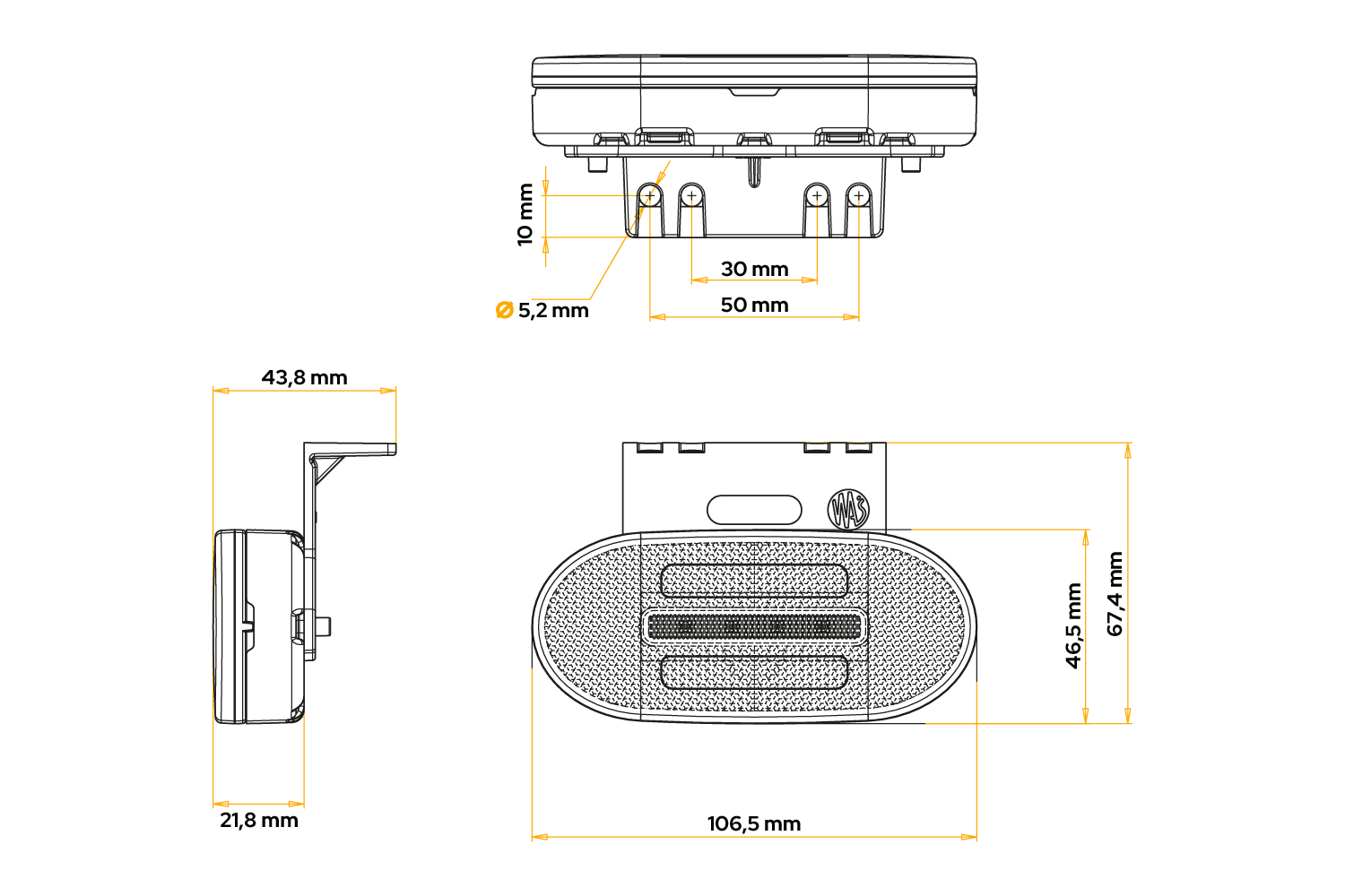 Η λυχνία σήμανσης W196 1383 της WAŚ έχει σχεδιαστεί για τοποθέτηση τόσο στην αριστερή όσο και στη δεξιά πλευρά του οχήματος και έχει τις ακόλουθες διαστάσεις: πλάτος 106,5 mm, ύψος 46,5 mm, βάθος 21,8 mm . Σχεδιασμένο να λειτουργεί σε εύρος τάσης 12-24 V , μπορεί να χρησιμοποιηθεί σε ρυμουλκούμενα, γεωργικά μηχανήματα, φορτηγά και ρυμουλκούμενα, γεγονός που υπογραμμίζει την καθολικότητά του . Εξοπλισμένο με βραχίονα στήριξης και στρογγυλό καλώδιο μήκους 0,22 m , επιτρέπει την εύκολη και γρήγορη εγκατάσταση. Χάρη στη χρήση τεχνολογίας LED ο λαμπτήρας παρέχει υψηλή απόδοση, ανθεκτικότητα και ενεργειακή απόδοση, εξασφαλίζοντας ασφάλεια σε διάφορες συνθήκες δρόμου .