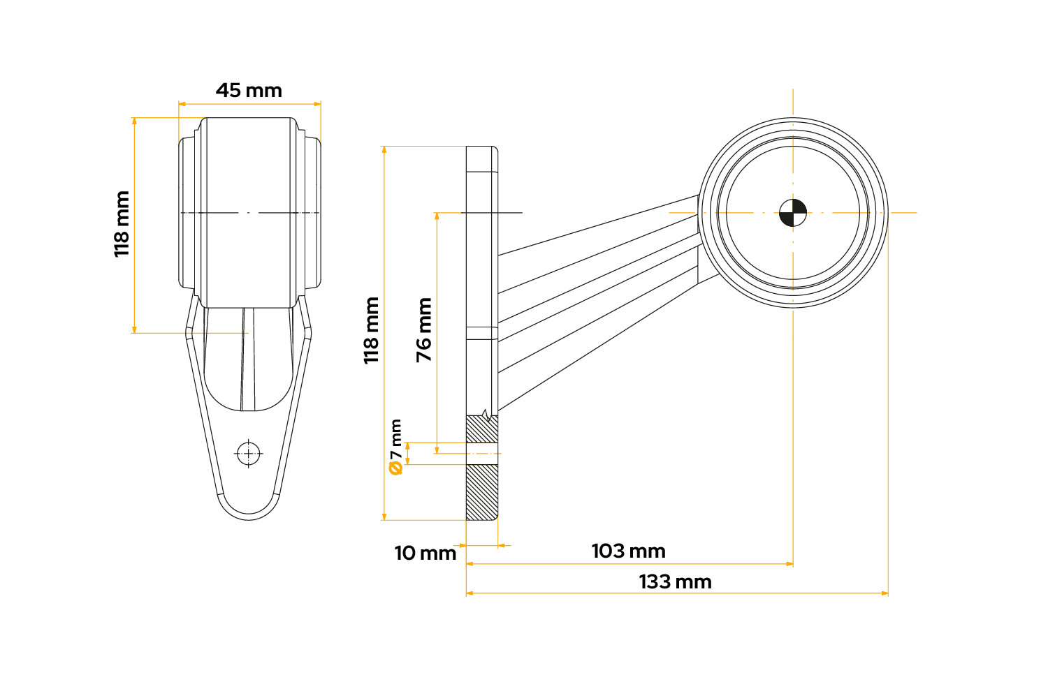 Η λυχνία LED FT-009 C της FRISTOM έχει σχεδιαστεί για τοποθέτηση τόσο στην αριστερή όσο και στη δεξιά πλευρά του οχήματος και χαρακτηρίζεται από τις ακόλουθες διαστάσεις: πλάτος 118 mm, ύψος 133 mm, βάθος 45 mm . Σχεδιασμένο να λειτουργεί σε εύρος τάσης 12-24 V , μπορεί να χρησιμοποιηθεί σε ρυμουλκούμενα, γεωργικά μηχανήματα, φορτηγά και ρυμουλκούμενα, γεγονός που υπογραμμίζει την καθολικότητά του. Εξοπλισμένο με κοντό, διαγώνιο λαστιχένιο μπούμα για τοποθέτηση και ένα επίπεδο καλώδιο μήκους 0,5 m επιτρέπει την εύκολη και γρήγορη εγκατάσταση. Χάρη στη χρήση τεχνολογίας LED ο λαμπτήρας παρέχει υψηλή απόδοση, ανθεκτικότητα και ενεργειακή απόδοση, εξασφαλίζοντας ασφάλεια σε διάφορες οδικές συνθήκες.
