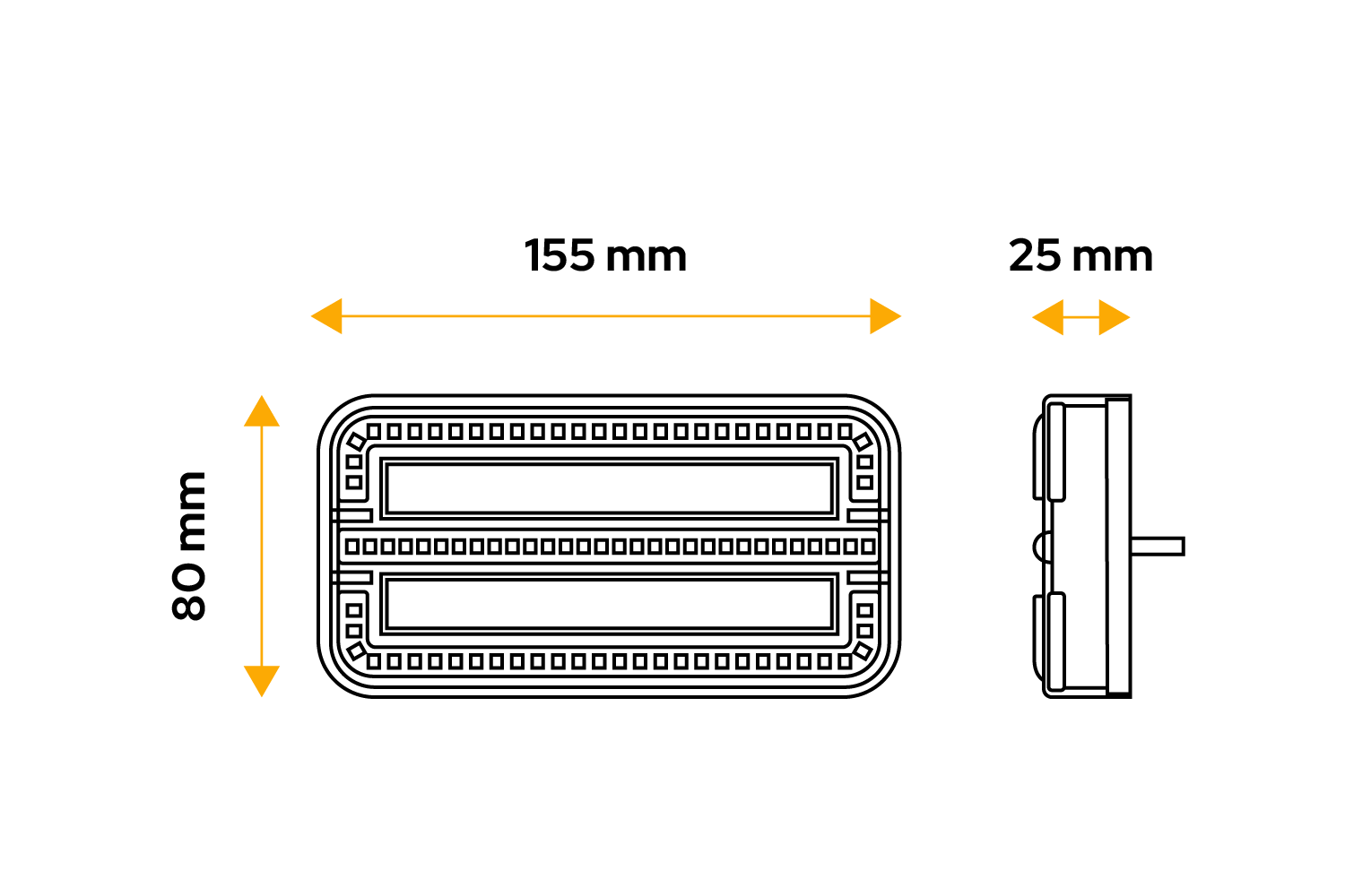 Το πίσω φως LED TT.12028DI της TT TECHNOLOGY έχει σχεδιαστεί για τοποθέτηση τόσο στην αριστερή όσο και στη δεξιά πλευρά του οχήματος και έχει τις ακόλουθες διαστάσεις: πλάτος 155 mm, ύψος 80 mm και βάθος 25 mm . Σχεδιασμένο να λειτουργεί σε εύρος τάσης 12–24 V , μπορεί να χρησιμοποιηθεί σε ρυμουλκούμενα, φορτηγά και ρυμουλκούμενα, γεγονός που υπογραμμίζει την καθολικότητά του. Εξοπλισμένο με καλώδιο μήκους 0,3 m , επιτρέπει την εύκολη και γρήγορη εγκατάσταση. Χάρη στη χρήση τεχνολογίας LED, ο λαμπτήρας παρέχει υψηλή απόδοση, ανθεκτικότητα και ενεργειακή απόδοση, εξασφαλίζοντας ασφάλεια σε διάφορες οδικές συνθήκες.