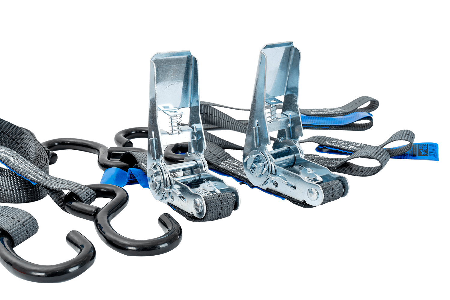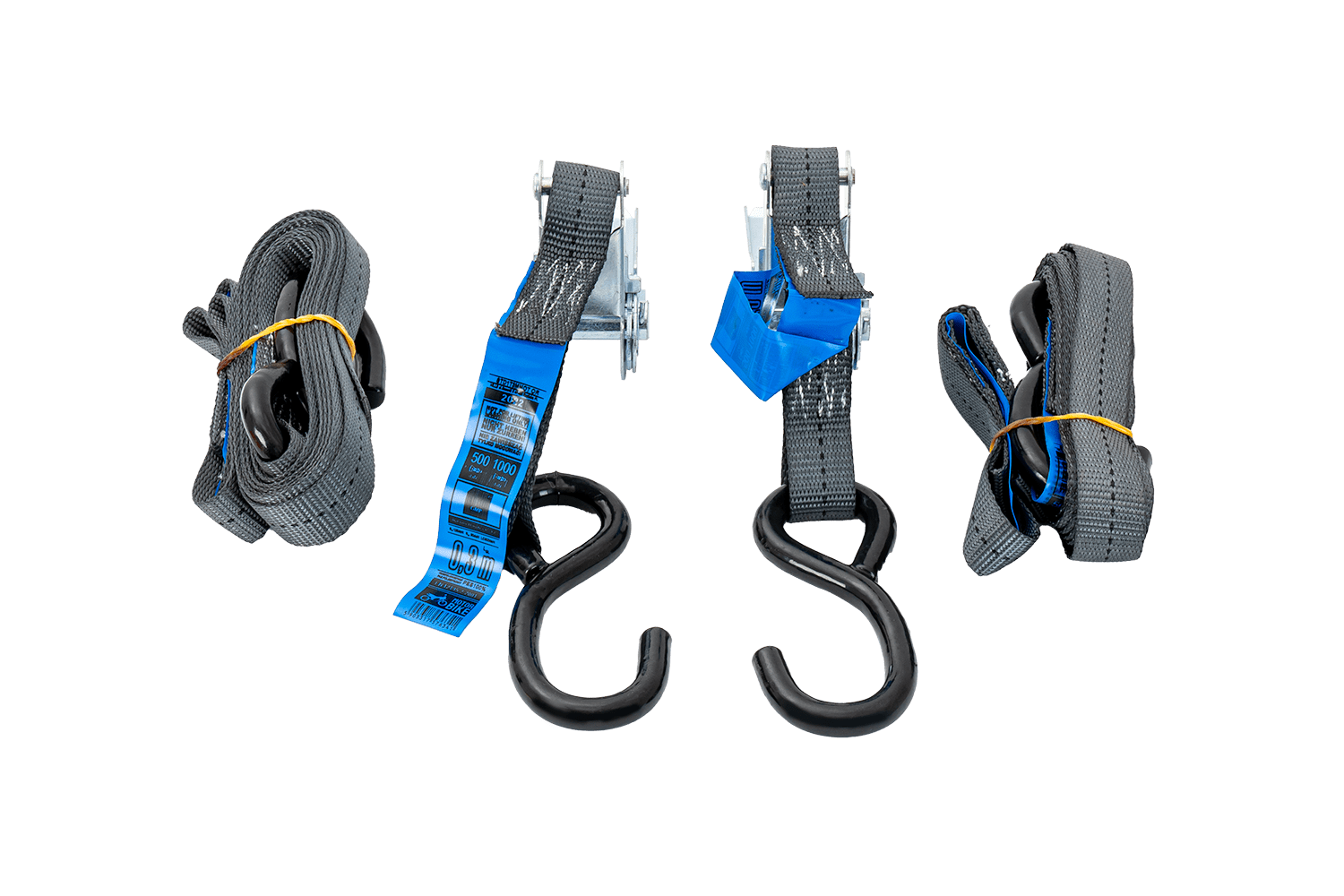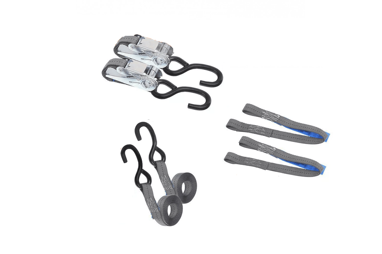 • Ένα σετ δύο ιμάντων και δύο ζωνών ασφαλείας για την ασφάλιση μιας μοτοσικλέτας HILLS, ονομαστικής χωρητικότητας 1 τόνου. Το συνολικό μήκος των ιμάντων με καστάνιες είναι 3 μέτρα και οι ζώνες ασφαλείας έχουν μήκος 0,45 μέτρα.