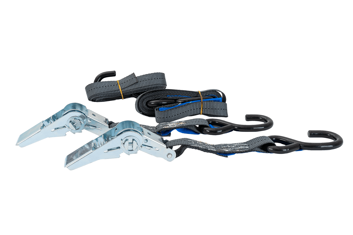 Αυτό το σετ δύο ιμάντων μεταφοράς HILLS και δύο ζωνών ασφαλείας αποτελεί μια ολοκληρωμένη λύση ασφάλισης μοτοσικλέτας. Κάθε γκρι ιμάντας μεταφοράς αποτελείται από δύο μέρη: έναν κοντύτερο με εντατήρα καστάνιας και γάντζο, και έναν μακρύτερο ιμάντα επίσης με γάντζο. Το συνολικό μήκος του ιμάντα, συμπεριλαμβανομένης της αγκράφας, είναι 3 μέτρα και το πλάτος των 25 mm παρέχει επαρκή επιφάνεια σύσφιξης. Οι ιμάντες έχουν αντοχή σε εφελκυσμό 1 τόνου (1000 daN) , η οποία, σε συνδυασμό με δύο ζώνες ασφαλείας 0,45 μέτρων, είναι ιδανική για την ασφαλή μεταφορά μιας μοτοσικλέτας σε τρέιλερ ή σε φορτηγό. Ο μηχανισμός καστάνιας επιτρέπει την γρήγορη και εύκολη ασφάλιση της μοτοσικλέτας, ελαχιστοποιώντας τον κίνδυνο μετατόπισης ή ζημιάς κατά τη μεταφορά. Επιπλέον, οι ζώνες ασφαλείας με κρίκους παρέχουν ακόμη μεγαλύτερη σταθερότητα τοποθέτησης, καθιστώντας αυτό το σετ ιδανική επιλογή για ασφαλή μεταφορά μοτοσικλέτας.
