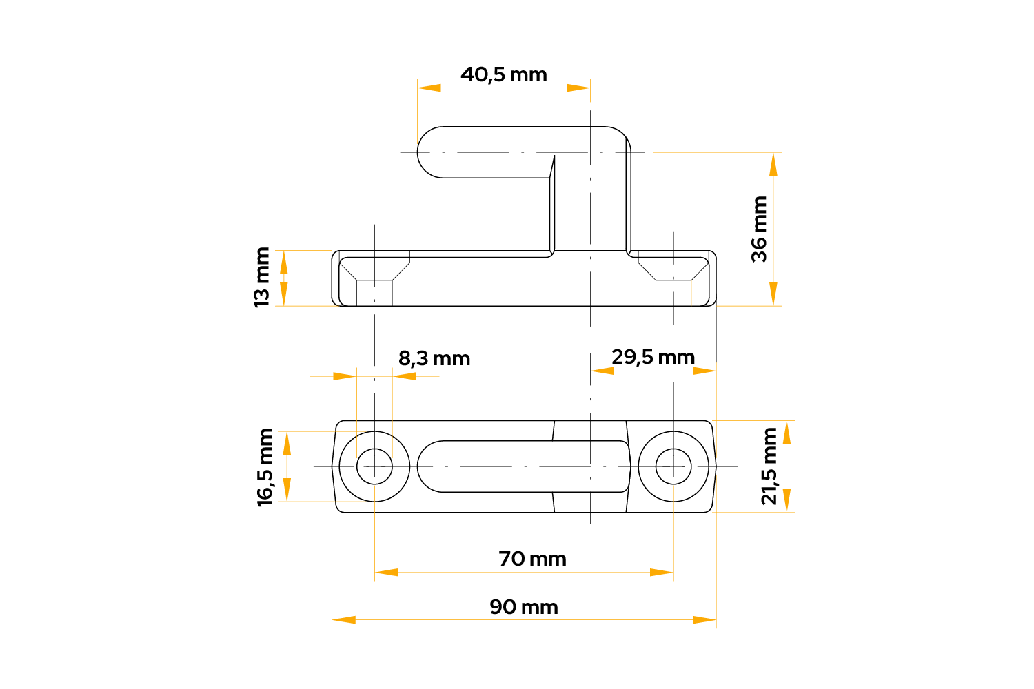 Η βάση πλευρικού μεντεσέ BSCHG 40-A της WINTERHOFF είναι ένα στιβαρό και ανθεκτικό εξάρτημα μηχανισμού σχεδιασμένο για εγκατάσταση σε συστήματα πλευρικού ανοίγματος σε ρυμουλκούμενα, ημιρυμουλκούμενα και άλλα οχήματα μεταφοράς. Η βάση έχει μήκος 90 mm και πλάτος 21,5 mm , γεγονός που την καθιστά συμβατή με πολλούς τυπικούς πλευρικούς μεντεσέδες. Η χρήση αυτής της βάσης εξασφαλίζει σταθερή οδήγηση του μεντεσέ και ομαλό άνοιγμα και κλείσιμο του πλαϊνού , αυξάνοντας έτσι την άνεση και την ασφάλεια χρήσης.