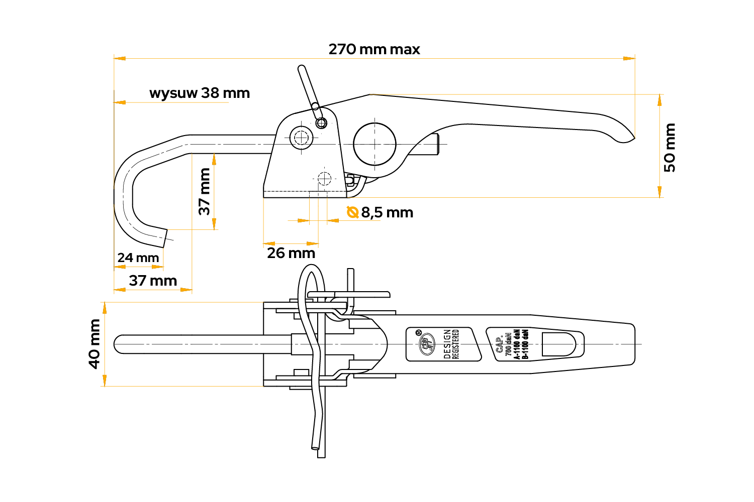 Το πλευρικό σύστημα ζεύξης STEELPRESS ZB-03C με γάντζο είναι ένα στιβαρό εξάρτημα μηχανισμού ρυμούλκησης σχεδιασμένο για να ασφαλίζει με ασφάλεια και μόνιμη ασφάλεια τις πλευρές των ρυμουλκούμενων φορτίου, γεωργίας και κοινής ωφέλειας. Το σύστημα ζεύξης έχει μέγιστο μήκος 270 mm και ικανότητα φορτίου 400 kg , εξασφαλίζοντας την ανθεκτικότητά του ακόμη και σε βαριά χρήση.