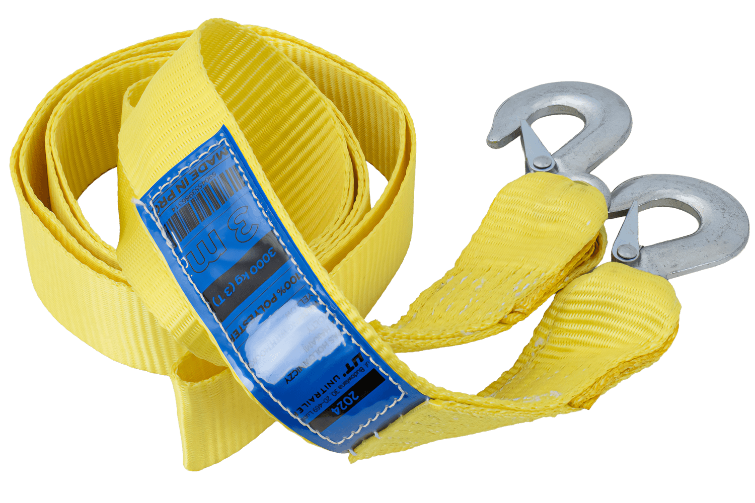 Ο κίτρινος ιμάντας ρυμούλκησης UNITRAILER με γάντζους είναι ένα αξιόπιστο αξεσουάρ για ρυμούλκηση έκτακτης ανάγκης επιβατικών αυτοκινήτων , φορτηγών διανομής και ελαφρών μηχανημάτων. Κατασκευασμένη από ανθεκτική συνθετική ταινία , μήκους 3 μέτρων και πλάτους 50 mm , που εξασφαλίζει επαρκή αντοχή, η ζώνη είναι εξοπλισμένη με συμπαγή μεταλλικά άγκιστρα ασφαλείας και στις δύο πλευρές. Η μέγιστη ικανότητα ρυμούλκησης είναι 3 τόνοι (3000 κιλά) , επιτρέποντάς σας να ρυμουλκείτε με ασφάλεια και αποτελεσματικότητα τα περισσότερα τυπικά οχήματα.