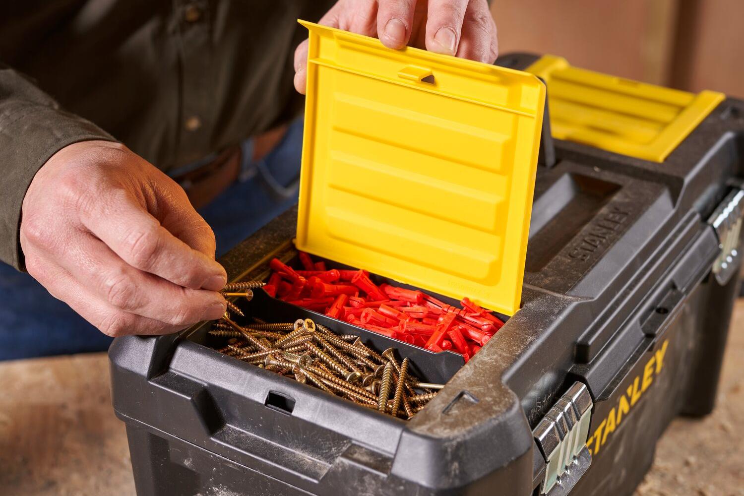Η εργαλειοθήκη STANLEY ESSENTIAL είναι μια αξιόπιστη και καλά μελετημένη λύση για όποιον εκτιμά την τάξη και την ανθεκτικότητα στην οργάνωση του εργαστηρίου του. Σχεδιασμένο με γνώμονα την εντατική χρήση, είναι κατασκευασμένο από πλαστικό υψηλής ποιότητας , το οποίο είναι ανθεκτικό σε μηχανικές βλάβες, γρατζουνιές και τις αρνητικές επιπτώσεις των ατμοσφαιρικών παραγόντων. Χάρη στα συμπαγή μεταλλικά μάνδαλα, το κουτί κλείνει με ασφάλεια και μόνιμα , γεγονός που εξαλείφει τον κίνδυνο τυχαίου ανοίγματος κατά τη μεταφορά εργαλείων.