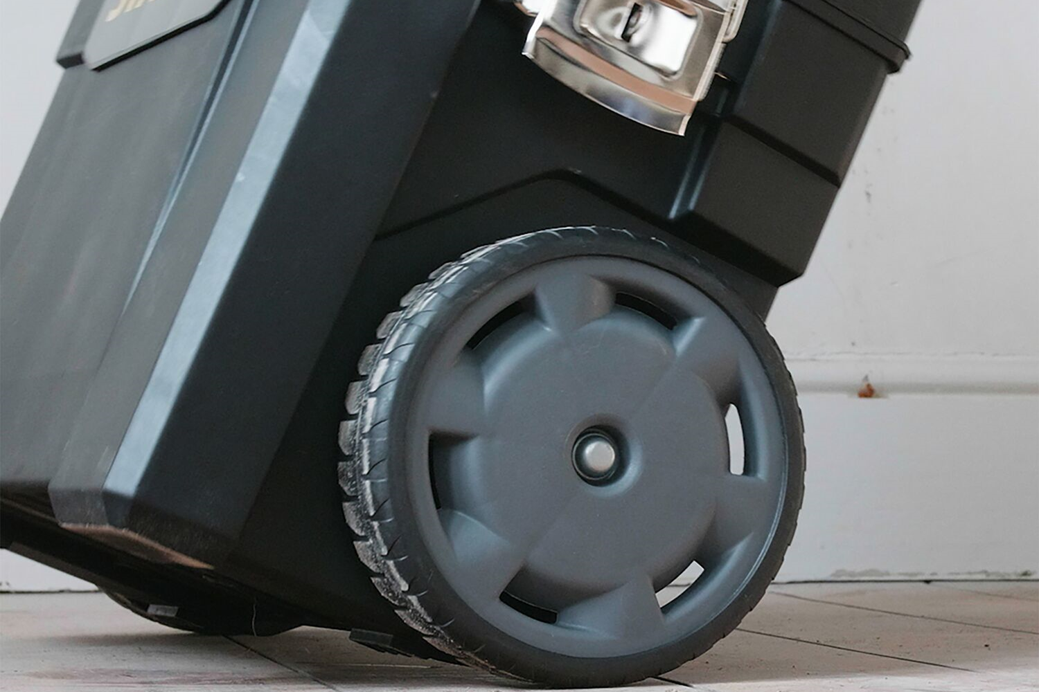 Η μεταφορά διευκολύνεται από μια τηλεσκοπική, επεκτεινόμενη λαβή και δύο συμπαγείς τροχούς που επιτρέπουν εύκολους ελιγμούς ακόμη και σε ανώμαλες επιφάνειες. Ολόκληρη η κατασκευή είναι κατασκευασμένη από ανθεκτικά υλικά – ανθεκτικό πλαστικό και συμπαγή μεταλλικά μάνδαλα που εγγυώνται μακροζωία και αντοχή σε μηχανικές βλάβες. Παρά τη μεγάλη χωρητικότητά του των 55,1 λίτρων και τη λειτουργική του διαίρεση σε μονάδες, το προϊόν διατηρεί συμπαγείς διαστάσεις, καθιστώντας εύκολη την αποθήκευση ακόμη και σε περιορισμένους χώρους.