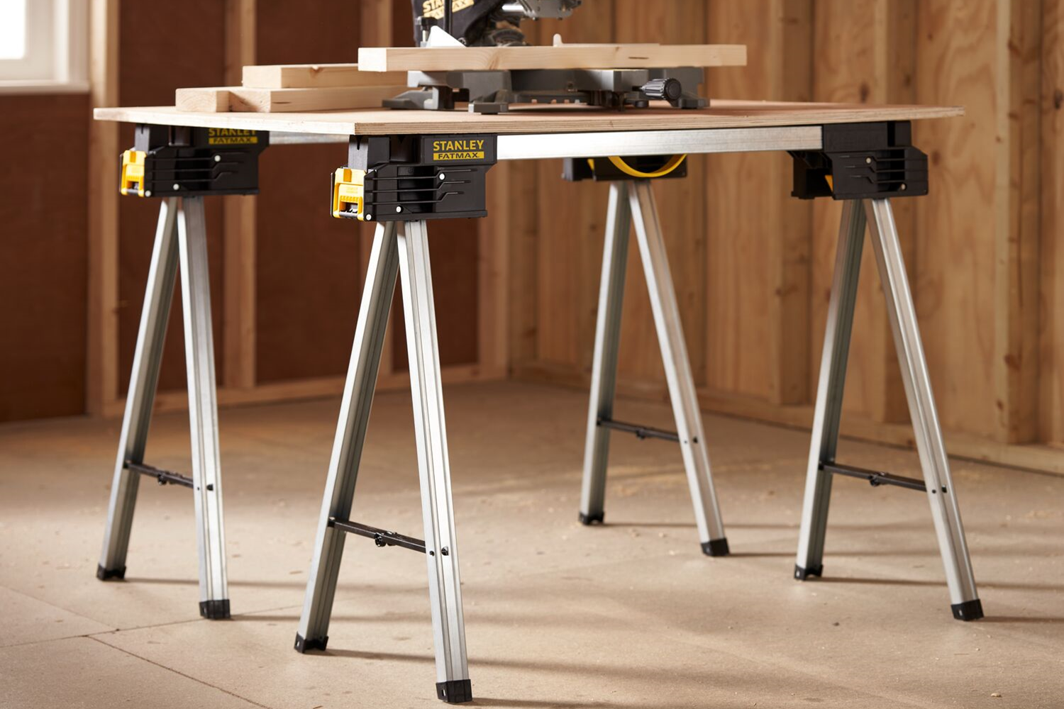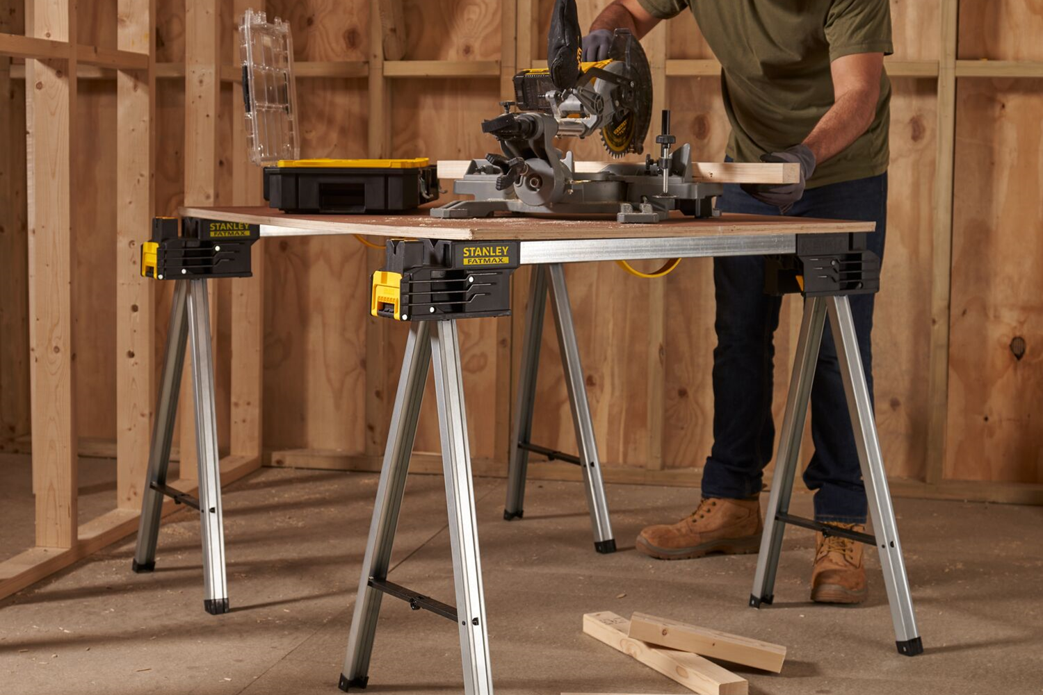 Οι λειτουργικές και ανθεκτικές βάσεις εργασίας Stanley FATMAX αποτελούν αναντικατάστατη υποστήριξη για όλες τις ξυλουργικές και κατασκευαστικές εργασίες. Χάρη στην στιβαρή κατασκευή και τις πρακτικές λειτουργίες τους, εξασφαλίζουν σταθερότητα, κινητικότητα και ευελιξία χρήσης τόσο στο εργοτάξιο όσο και στο εργαστήριο. Η κατασκευή των κιγκλιδωμάτων επιτρέπει τη γρήγορη και σταθερή κατασκευή μιας μεγάλης επιφάνειας εργασίας , π.χ. ένα τραπέζι εργασίας, χάρη στη χρήση καναλιών δοκού. Επιπλέον, το πάνω μέρος των βάσεων διαθέτει αυλάκωση σχήματος V (V-Groove) , η οποία επιτρέπει την ακριβή κοπή σωλήνων και στοιχείων με στρογγυλό προφίλ.