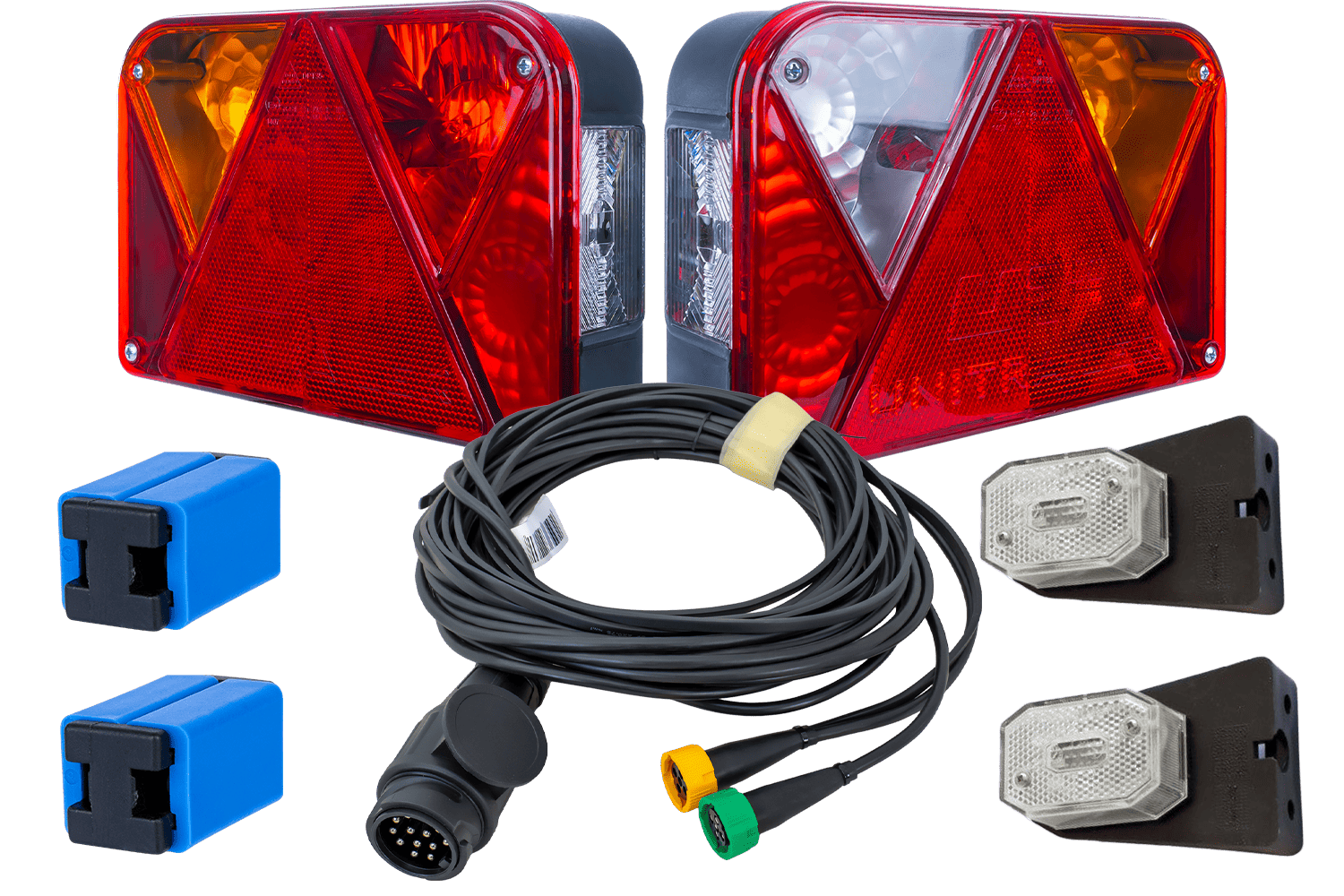 Το κιτ φωτισμού είναι μια ολοκληρωμένη ηλεκτρική εγκατάσταση που παρέχει πλήρη και συμβατό με τους κανονισμούς φωτισμό για ρυμουλκούμενα, τρέιλερ και άλλα οχήματα μεταφοράς , αυξάνοντας την ορατότητα και την οδική τους ασφάλεια. Αποτελείται από πίσω φώτα, φώτα σήμανσης, καλωδίωση και συνδέσμους γρήγορης σύνδεσης. Οι σύνδεσμοι γρήγορης σύνδεσης επιτρέπουν γρήγορη και εύκολη εγκατάσταση και εξασφαλίζουν μια ανθεκτική και ασφαλή σύνδεση μεταξύ των φώτων σήμανσης και της καλωδίωσης. Χάρη στα εξαρτήματα υψηλής ποιότητας, το κιτ εγγυάται αξιόπιστη λειτουργία και καλή ορατότητα. και συμμόρφωση με τα ισχύοντα πρότυπα ασφαλείας. Αυτή είναι η ιδανική λύση για όσους αναζητούν ένα ολοκληρωμένο και ανθεκτικό σύστημα φωτισμού οχήματος .