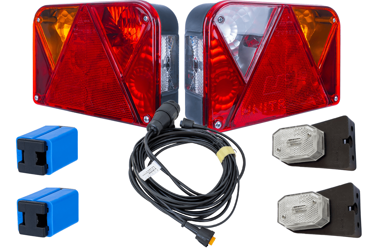Το κιτ φωτισμού είναι μια ολοκληρωμένη ηλεκτρική εγκατάσταση που παρέχει πλήρη και συμβατό με τους κανονισμούς φωτισμό για ρυμουλκούμενα, τρέιλερ και άλλα οχήματα μεταφοράς , αυξάνοντας την ορατότητα και την ασφάλειά τους στο δρόμο. Αποτελείται από πίσω φώτα, πλευρικά φώτα σηματοδότησης, ηλεκτρική καλωδίωση και ταχυσύνδεσμους. Οι ταχυσύνδεσμοι επιτρέπουν γρήγορη και εύκολη εγκατάσταση και εξασφαλίζουν μια ανθεκτική και ασφαλή σύνδεση των φώτων σήμανσης με τα καλώδια. Χάρη στα υψηλής ποιότητας εξαρτήματα, το σετ εγγυάται αξιόπιστη λειτουργία και καλή ορατότητα. και συμμόρφωση με τα ισχύοντα πρότυπα ασφαλείας. Αυτή είναι η ιδανική λύση για όσους αναζητούν ένα ολοκληρωμένο και ανθεκτικό σύστημα φωτισμού οχήματος .