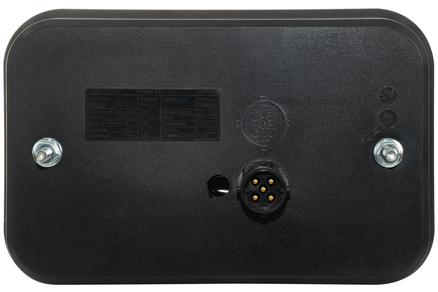 Η καλωδίωση είναι εξοπλισμένη με δύο 5-πολικούς συνδετήρες μπαγιονέτ για τη σύνδεση των πίσω φώτων. Το σύστημα μπαγιονέτ εξασφαλίζει γρήγορη και ασφαλή εγκατάσταση, εξαλείφοντας τον κίνδυνο τυχαίας αποσύνδεσης κατά την οδήγηση. Ο σχεδιασμός του συνδετήρα εγγυάται αδιάβροχη σύνδεση και προστατεύει τις επαφές από τη διάβρωση, εξασφαλίζοντας μακροχρόνια και απρόσκοπτη λειτουργία ολόκληρου του συστήματος φωτισμού του τρέιλερ.