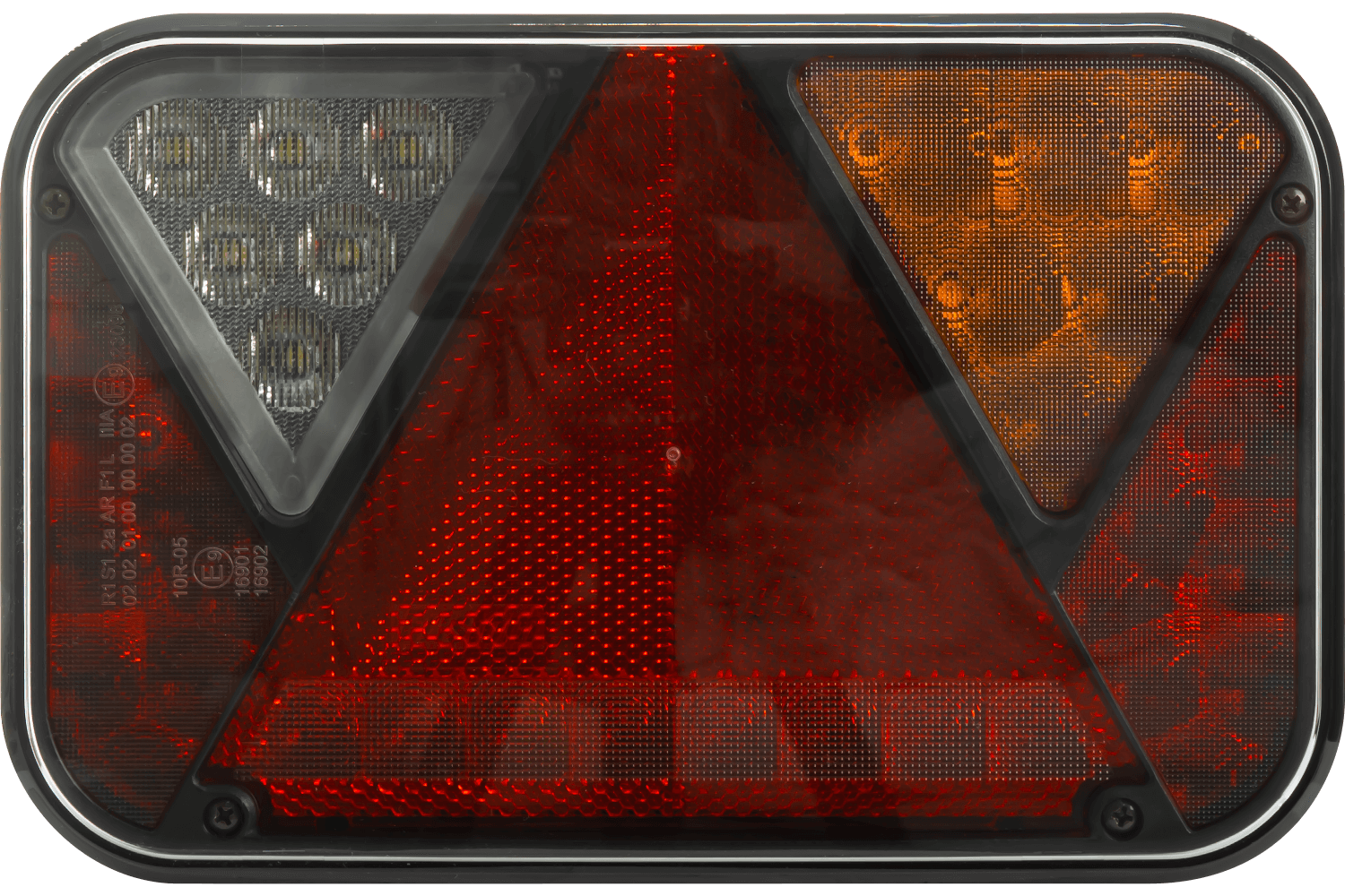 Λειτουργίες πίσω φώτων: φως θέσης , το οποίο διασφαλίζει την ορατότητα του οχήματος κατά την οδήγηση τη νύχτα. φως φρένων , σηματοδότηση πέδησης; φλας , που επιτρέπει στον οδηγό να υποδεικνύει την πρόθεσή του να στρίψει · φως οπισθοπορείας (δεξιό φως), το οποίο διευκολύνει τους ελιγμούς οπισθοπορείας βελτιώνοντας την ορατότητα πίσω από το όχημα· φως ομίχλης (αριστερή λάμπα) , η οποία αυξάνει την ασφάλεια σε δύσκολες καιρικές συνθήκες, όπως ομίχλη ή έντονες βροχοπτώσεις . φωτισμός πινακίδας κυκλοφορίας , ο οποίος διασφαλίζει την ορατότητα του αριθμού κυκλοφορίας του οχήματος τη νύχτα · και ένα ανακλαστικό τρίγωνο που αυξάνει την ορατότητα του οχήματος .