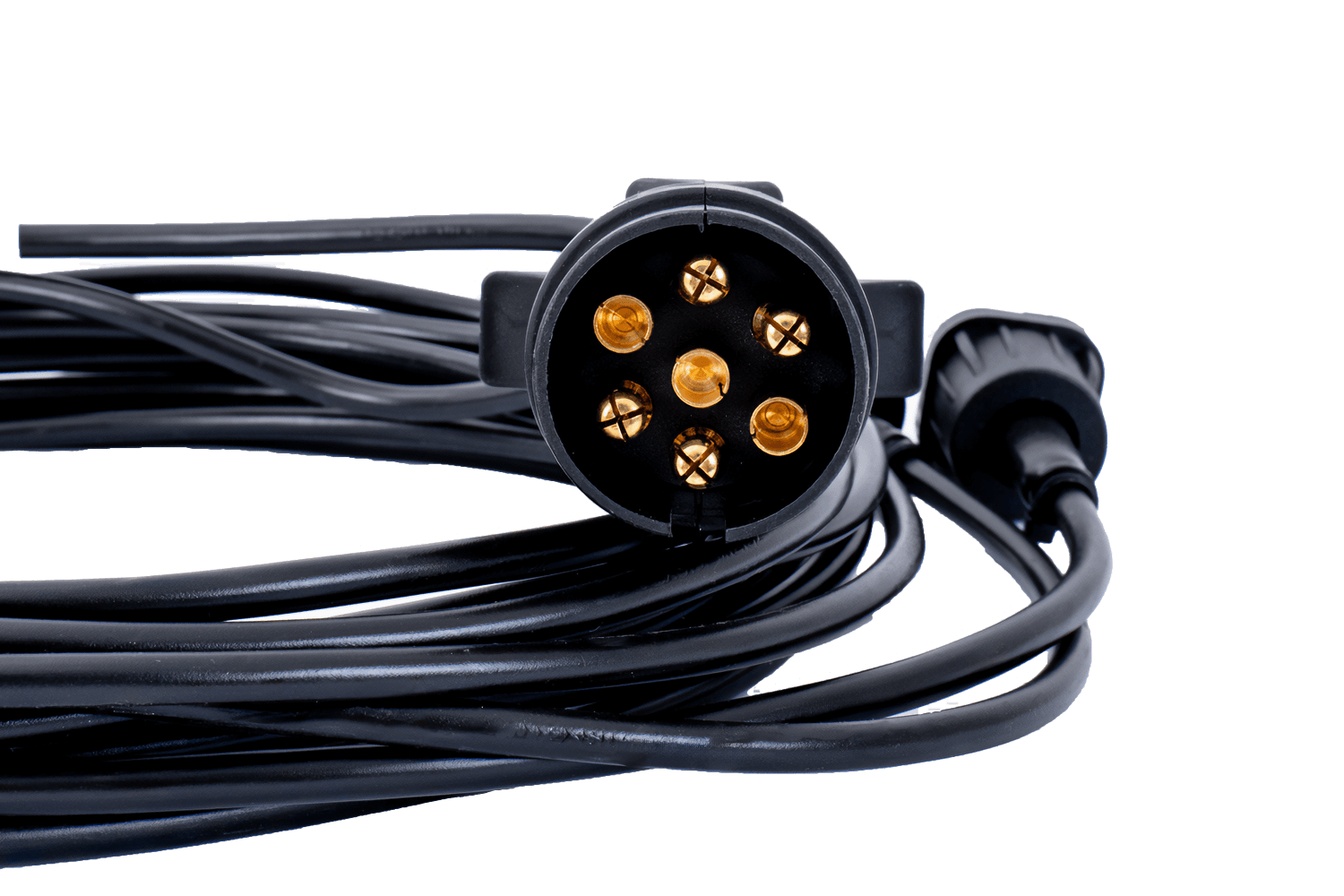 Η καλωδίωση είναι εξοπλισμένη με δύο 5-πολικούς συνδετήρες μπαγιονέτ για τη σύνδεση των πίσω φώτων. Το σύστημα μπαγιονέτ εξασφαλίζει γρήγορη και ασφαλή εγκατάσταση, εξαλείφοντας τον κίνδυνο τυχαίας αποσύνδεσης κατά την οδήγηση. Ο σχεδιασμός του συνδετήρα εγγυάται αδιάβροχη σύνδεση και προστατεύει τις επαφές από τη διάβρωση, εξασφαλίζοντας μακροχρόνια και απρόσκοπτη λειτουργία ολόκληρου του συστήματος φωτισμού του τρέιλερ.
