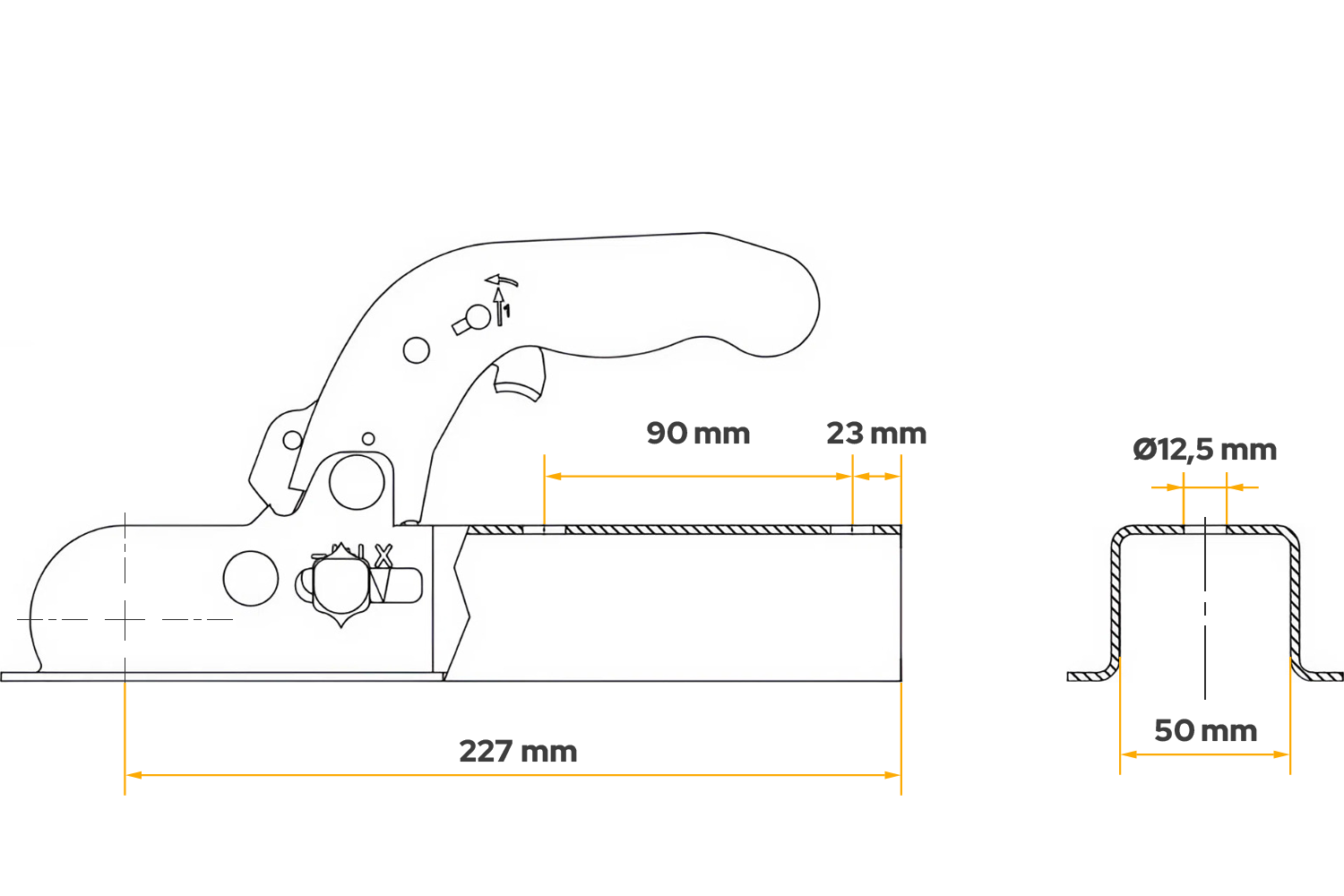 Ρυμουλκούμενο KNOTT K7.5-K με σφαιρική ράβδο έλξης για ρυμουλκούμενο 750kg με τετράγωνη ράβδο έλξης 50mm