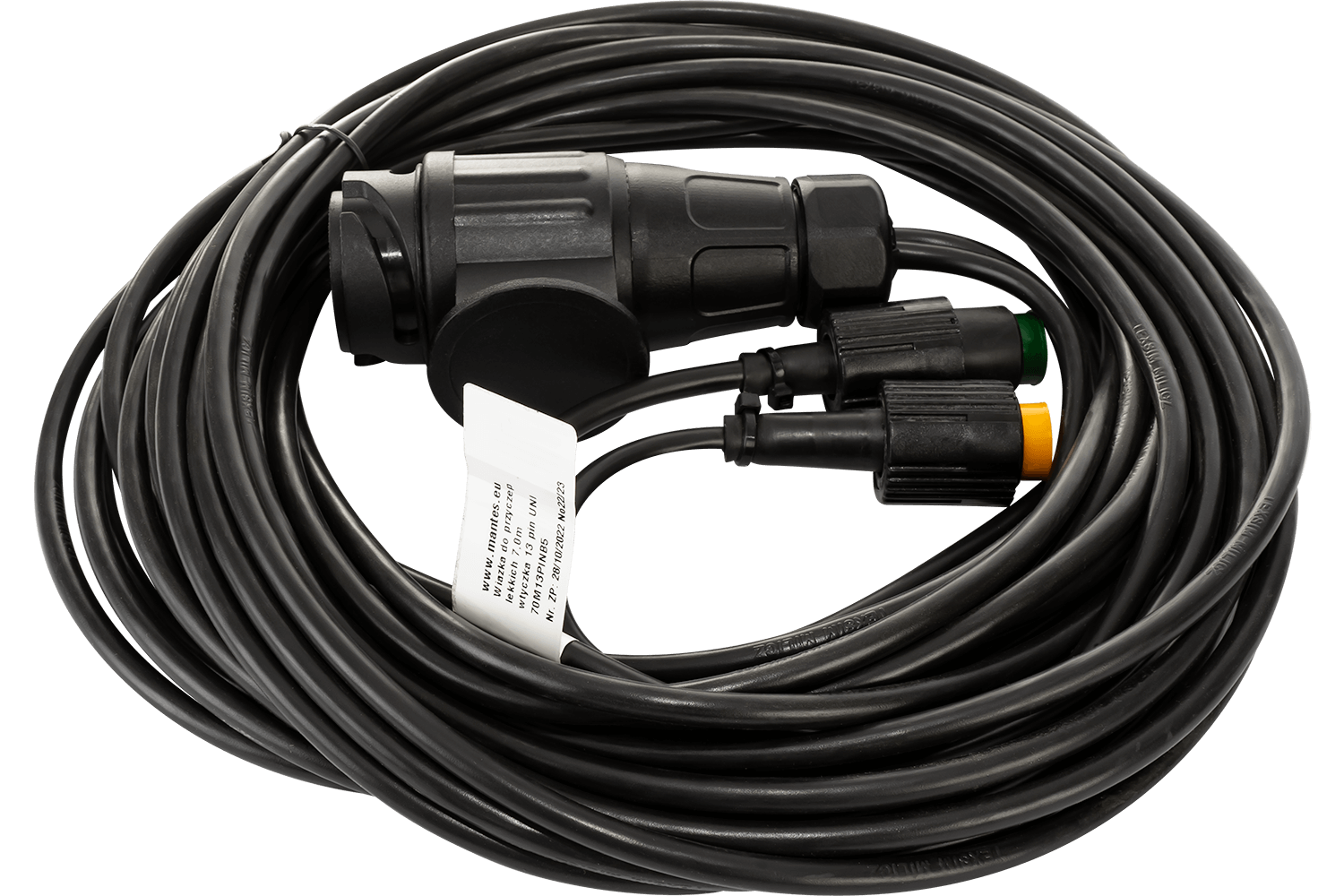 Ηλεκτρική εγκατάσταση MANTES, ζώνη ρυμουλκούμενου ρυμουλκούμενου, 7 m, βύσμα 13 PIN, ξιφολόγχες 2x 5 PIN