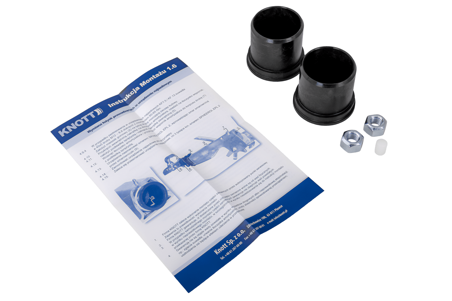 Το κιτ συρόμενων δακτυλίων KNOTT KK0990S περιλαμβάνει όλα τα απαραίτητα εξαρτήματα τοποθέτησης για την σωστή αντικατάσταση των ρουλεμάν οδηγών σε συσκευές υπερχείλισης. Το κιτ περιλαμβάνει: 1 πείρο οδηγό PA66 10x14 mm (69004594) , που εξασφαλίζει σταθερή εφαρμογή του δακτυλίου, 2 ρουλεμάν οδηγούς 44,6 mm (69000194), που εξασφαλίζουν ακριβή οδήγηση ολίσθησης και 2 παξιμάδια αυτοασφαλιζόμενου τύπου M12 (D980.004) , που εξασφαλίζουν ανθεκτική και ασφαλή σύνδεση. Όλα τα εξαρτήματα είναι συμβατά με τις συσκευές υπερχείλισης που αναφέρονται παραπάνω, εξασφαλίζοντας υψηλή ανθεκτικότητα, ακρίβεια συναρμολόγησης και αξιόπιστη λειτουργία του μηχανισμού.