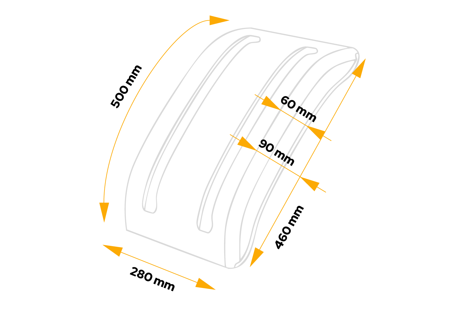 Το ημι-λασπωτήρα D10228 της DOMAR είναι ένα συμπαγές και στιβαρό στοιχείο σχεδιασμένο για την προστασία των τροχών σε ρυμουλκούμενα γενικής χρήσης, ημι-ρυμουλκούμενα, γεωργικά και κατασκευαστικά μηχανήματα και άλλα οχήματα που λειτουργούν σε απαιτητικές συνθήκες. Χάρη στις διαστάσεις του - μήκος 460 mm, πλάτος 280 mm και ύψος 90 mm - λειτουργεί εξαιρετικά όπου απαιτείται αποτελεσματική προστασία από νερό, λάσπη και πέτρες κάτω από τους τροχούς, εξοικονομώντας παράλληλα χώρο και παρέχοντας εύκολη πρόσβαση στα στοιχεία οδήγησης. Δεν διαθέτει εργοστασιακές οπές στερέωσης , γεγονός που επιτρέπει στον χρήστη να προσαρμόζει ελεύθερα τα σημεία στερέωσης στη συγκεκριμένη δομή του οχήματος .