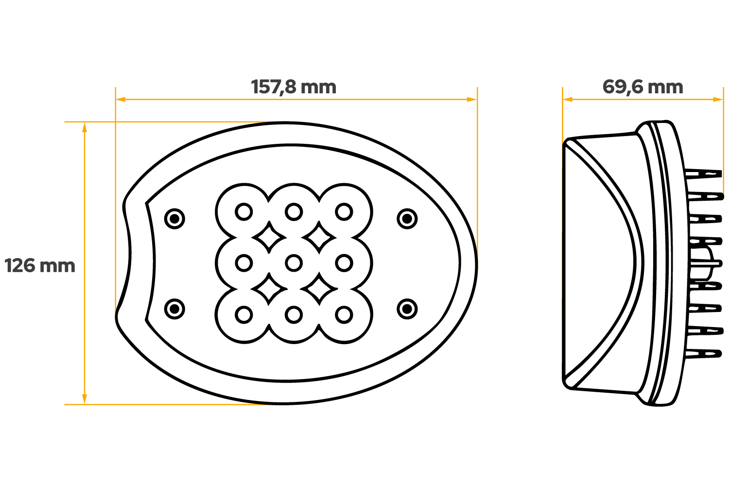 Οι λάμπες είναι εξοπλισμένες με 9 διόδους OSRAM με ισχύ 45 W και φωτεινότητα 3600 lumen η καθεμία. Εκπέμπουν ουδέτερο λευκό φως με θερμοκρασία 5700 K , εξασφαλίζοντας εξαιρετική ορατότητα τη νύχτα και κατά την εργασία σε συνθήκες περιορισμένης ορατότητας. Ο διάχυτος φακός φωτίζει ομοιόμορφα τον χώρο εργασίας και τον καθιστά ιδανικό τόσο για εργασίες ακριβείας όσο και για φωτισμό ευρείας περιοχής.
