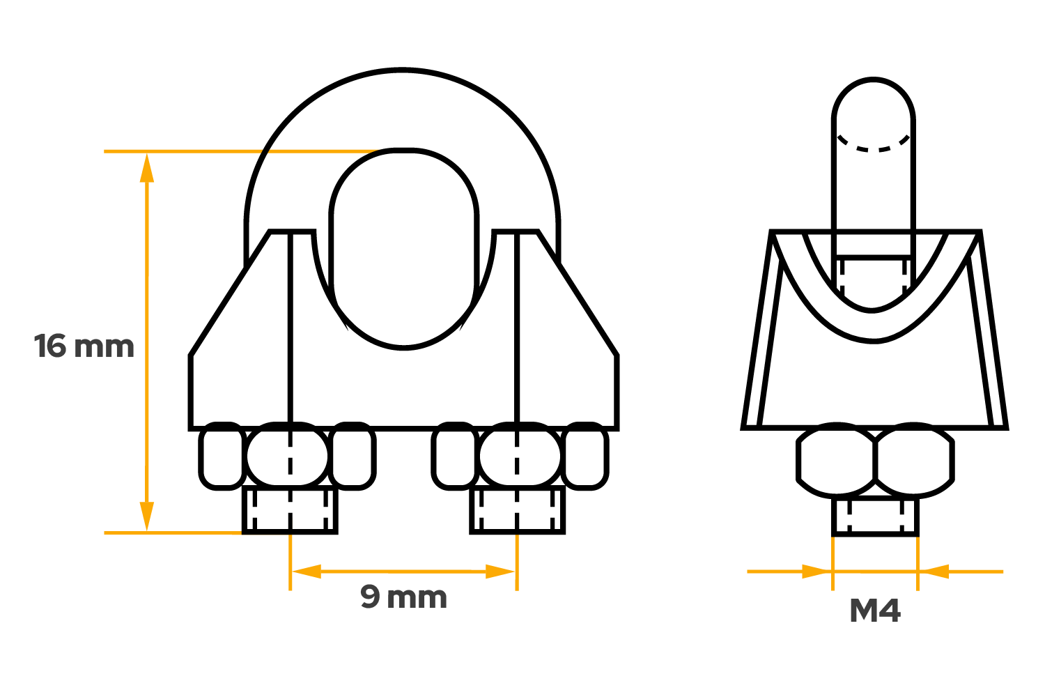 • Ο σφιγκτήρας τόξου ZL.3 DROMET έχει σπείρωμα M4 και ύψος 20 mm και έχει σχεδιαστεί για να σφίγγει χαλύβδινα καλώδια με διάμετρο 3 mm. Χρησιμοποιείται για την ασφαλή σύνδεση χαλύβδινων καλωδίων, το σχηματισμό βρόχων και την ακινητοποίησή τους.